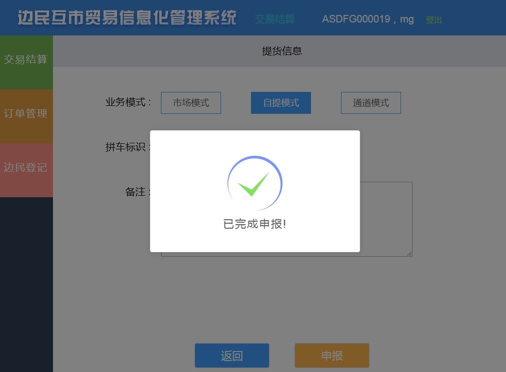 海關(guān)總署監(jiān)管司、科技司于2019528日正式開始推行總署互市統(tǒng)一版系統(tǒng)的試運行工作,航通反應(yīng)迅速,第一時間在滿洲里中俄邊民互市貿(mào)易區(qū)上線了航通運營管理平臺,并依照海關(guān)總署的聯(lián)調(diào)測試要求,成為業(yè)內(nèi)首家完成聯(lián)調(diào)測試唯一實現(xiàn)與總署互市統(tǒng)一版系統(tǒng)成功對接的企業(yè)。